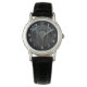Uhr, Klassische Damenuhr mit schwarzen Lederarmband