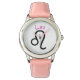 Kinderuhr aus Edelstahl mit rosa Lederarmband