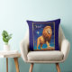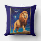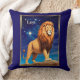 Kissen im Tierkreiszeichen Leo, mit einem mächtigen Löwen, der stolz auf einem Felsen unter einem Sternenhimmel stehend ist. Der fließende Mann des Löwen strahlt Stärke und Adel aus und spiegelt Leos Eigenschaften von Vertrauen, Führung und Mut wider.