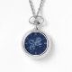 Beobachten Sie das Sonnenzeichen für Leo in weichem silberblauem Blau, überlagert mit den Sternen des Sternbildes, vor einem dunkelblauen Sternenhimmel-Hintergrund