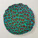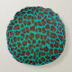 Leopard Brown und Aquamarin Print Rundes Kissen