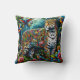 Ein wunderschön gestaltetes Throw Kissen besticht durch einen lebhaften Leopard, der von üppigen tropischen Pflanze und farbenfrohen Vögeln umgeben ist.