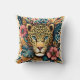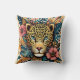 Ein atemberaubendes Throw Kissen präsentiert ein zauberhaftes Leopardengeflecht, umgeben von farbenfrohen Blättern und Blume und schafft so ein lebendiges und künstlerisches Herzstück für jede Zimmerdekoration.