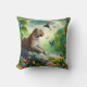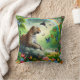 Ein atemberaubendes Throw Kissen besticht durch einen majestätischen Leoparden auf einem Felsen, umgeben von lebhaften Schmetterlingen und üppiger Vegetation unter einem faszinierenden Regenbogen, der eine wilde Naturlandschaft schafft.