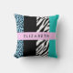 Leopard Print, Zebra Print, Blau, Ihr Name Kissen
