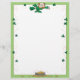 Dieser St. Patrick's Day Briefkopf hat eine grüne Grenze mit Kleeblättern, einen Goldtopf am unteren Rand und einen niedlichen Cartoon-Kobold am oberen Seitenrand.