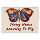 Feiern Sie das Wachstum Ihres auftauchenden Powers mit diesem mehrfarbigen Schmetterling mit dem Körper einer Frau in der Mitte und in den Wörtern "die starke Frau, die lernt zu fliegen."