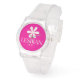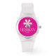 Dieses kühne Design zeichnet sich durch eine schlichte weiße Blume mit den Worten "Lesbian AF" darunter aus, Set vor einem lebhaften, heiß rosa Hintergrund. Die minimalistische Blume kontrastiert wunderbar mit dem auffallenden Rosa und schafft eine kraftvolle, aber elegante Note. Dieses Stück ist auf einer klaren Silikonschlaufuhr konzipiert und eignet sich ideal für alle, die ihren Stolz sowohl stilvoll als auch zuversichtlich ausdrücken gewollt haben.