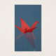 Eine Familie roter Origami-Krane schwimmt über das stille Wasser eines Pools, während die Regentropfen um sie herum schwimmen.