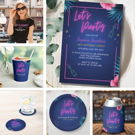 Let's Party Neon Electric Pink BirthdayDesignt von Ma de Lourdes Rocha Barrientos
