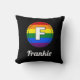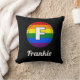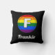 Letter F Initial & Name Gay Pride Rainbow Monogram - Black Throw Pillow. Dieses kreisförmige Design weist einen weißen mit Monogramm Buchstaben F auf einem Hintergrund für den LGBTQ-Pride-Flag auf. Fügen Sie diesem Kissen einen Namen hinzu, damit Sie etwas Einzigartiges und Persönliches für Ihre Wohngestaltung machen können. Ideal für Sie oder einen besonderen Menschen in Ihrem Leben.