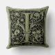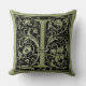 Charmanter Brief I initiale Monogramm Kalligrafie William Morris Stil Typografie ersten Brief in Schwarz über Vintagen Salbeigrün - Avocado grüne Buch Auskleidung mit von weißen Ginkgo Biloba Blätter.