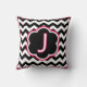 Letter J. Hübsche Monogramm (Single inital) werfen Kissen. Dicke schwarz-weiße Zickzack-Streifen (Zickzack), mit weißer und fuchsienfarbener Dekoration und einem Single in der Mitte. Unsere Kissen sind in drei Größen erhältlich: 16" x 16" Quadrat, 20" x 20" Quadrat, oder ein Lendenkissen, das 13" x 21" ist, und entweder Baumwolle oder Polyester. Produziert von nachhaltig beschäftigten Single Müttern in den USA, trägt Ihr maßgeschneiderter Kissenkauf dazu bei, den Teufelskreis von Armut für Single Mütter und ihre Kinder zu durchbrechen, während es in Ihrer Zuhause großartig aussieht! Von Scarebaby Design, gestützt durch die Zazzle-Garantie.