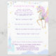 The "Letter to the Future" game for a magical birthday is decorated with a charming winged unicorn surrounded by sweet images of a magical castle, clouds, and festive garlands.
