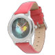 Uhr, Kinderuhr aus Edelstahl mit rosa Lederarmband