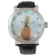 Uhr, Vintage Männeruhr mit schwarzem Lederarmband