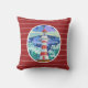 Wie ein Leuchtturm in der Nacht! Farbenfrohe Kunstwerke eines Leuchtturms, auf einem krummeln roten Kissen mit weißen pinstripes. Ideal für das Strandhaus!