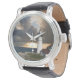 Uhr, Vintage Männeruhr mit schwarzem Lederarmband