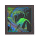 Die Libelle stellt Wiedergeburt oder Umwandlung dar. Libellengeschenk oder -Schmuckkästchen. Cooles Blaues, grün und lila auf Schwarzem.
