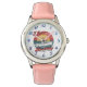 Kinderuhr aus Edelstahl mit rosa Lederarmband