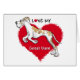 Lass jedem weiß, dass du dein Grosses Dänisch (ungropfte Ohren) mit diesem großen roten Herz LIEBE und mit dem Text "I Liebe My Great Dane" von Danes-R-Us tanzt.