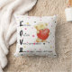Ein hübscher Kissen mit dem Wort "Liebe" und einem niedlichen Teddy-Bären, der ein rotes Herz trägt, auf farbenprächtigen, kleinen Herzmustern. Ideal für die Wohngestaltung des Valentins und ein tolles Geschenk für diesen besonderen Menschen in Ihrem Leben.