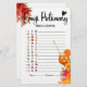 "Liebe bei First Spritz" Citrus Emoji Pictionary Game | Spaß Orange Brautparty Aktivität Bereiten Sie sich auf einen Ausbruch von Lachen und freundlichen Wettbewerb mit unserer schönen "Liebe auf First Spritz" Citrus Emoji Pictionary Game! Diese reizvolle Spielkarte ergänzt perfekt Ihr Thema "Liebe bei First Spritz" mit lebhaften Zitrusorangen, frischer Vegetation und üppigen botanischen Elementen. Es ist die ideale interaktive Aktivität, um die Gäste in Ihrem Brautparty zu unterhalten. Dieses Emoji-Picktionary soll Ihnen Spaß und Verlobung bringen. Die fröhlichen Zitrusfrüchte-Design-Krawatte in schöner Weise mit Ihrer allgemeinen Duschästhetik, schaffen ein zusammenhängendes und einladendes Gefühl für Ihre Feier. Die Gäste werden Liebe haben, bekannte Emojis-Sätze oder Wörter zu entziffern, um unglaublich witzig Vermutungen und unvergessliche Momente zu erleben. Passen Sie dieses Brautparty einfach an, indem Sie den Namen der Braut oder eine personalisierte Nachricht hinzufügen. Die Spielkarte enthält eine Liste von Emoji-Puzzles im Vorfeld des Set und einen separaten Antwortschlüssel für den Gastgeber. Sie können die Schriftart, Farben und die Gestaltung individuell gestalten, um den besonderen Stil und die Farbpalette Ihrer Dusche perfekt zu gestalten. Wählen Sie aus Zazzles Sortiment an hochwertigen Papiersorten für ein erstklassiges Ambiente. Koordinieren Sie diese wunderschönen "Liebe bei First Spritz" Citrus Emoji Pictionary Game Karten mit Ihren Einladungen, Begrüßungszeichen und anderen Party-Schreibwaren für eine perfekt zusammenhängende und denkwürdige Feier für die Braut zu sein. Klicken Sie auf "Jetzt individualisieren", um Ihre "Liebe bei First Spritz" Citrus Emoji Pictionary Game zu personalisieren und Ihrem Brautparty einen Spielspass hinzuzufügen! Liebe beim ersten Emoji-Spiel, Zitrus-Brautparty-Picktionary, Emoji-Hochzeitsspiel, Orange-Brautparty-Spiel, lustige Brautparty-Aktivität, maßgeschneidertes Emoji-Spiel, botanisches Brautparty, Zitrus-Polterabend-Spiel, le, personalisierte