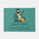 Diese Türmatte zeigt einen bärtigen Mann, der einen niedlichen, gelben Hund umarmt. Das ist ein großartiges Geschenk für einen jungen arbeitenden Mann, der einen Hund besitzt oder den Hund im Allgemeinen Liebe.