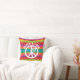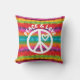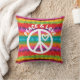Mit diesem Kissen mit einem weißen Schild mit dem Text "Peace & Liebe" verleihen Sie Ihrem Dekor ein wenig Ruhe und Liebe. Hintergrund ist eine mehrfarbig gestreifte gefärbte Krawatte inspiriert Design. Die Farbtöne Rot, Rosa, Grün, Blau, lila, Orange und Gelb.