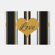 Stilvolle Liebe goldenes Herz Türmatte. Das Doormat weist ein großes goldenes Herz auf, in dem das Wort Liebe auf einem schwarz, weiß und goldfarbenen gestreiften Hintergrund steht. Wunderschöne und stilvolle Wohngestaltung für den Valentinstag oder das ganze Jahr!
