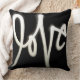 Ein modernes Kissen mit schwarz-weiß "Liebe" Graffiti.