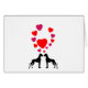 Doggenpara vor Herzenbogen, Valentinstag Dogge. Great Dane mit Herzkolonnade, besondere Valentinerinnen