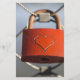 Rotes Schloss mit Herz auf einem Drahtzaun.