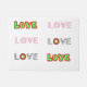 Ein Retro-Stil-Türmchen mit LIEBE darüber geschrieben. LIEBE, LIEBE, LIEBE, LIEBE, LIEBE. Das Doormat ist von hoher Qualität und wird über Jahre dauern, um den lassend Gästen zu zeigen, was sie beim Überschreiten der Schwelle erwarten. LIEBE.
