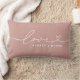 Modernes und stilvolles Design mit Kissen für Lumbalwirbelkissen und einem einfachen und minimalen "Liebe"-Typografie-Design, das blüh- und Herzdetails enthält. Personalisieren Sie den unten stehenden Großbuchstaben mit einem Monogramm für ein Paar oder eine Familie, ein Zitat oder einen anderen bevorzugten Text. Die staubneutrale Rose ist in Rosa und Weiß gehalten.