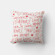 Dieses Kissen enthält ein spielerisches Muster von handgeschriebenen Wörtern wie "LIEBE", "ADORE" und "FOREVER", die mit Herzformen vermischt sind, die alle in roter Farbe auf weißem Hintergrund gehalten sind. Die überlappende und zufällige Anordnung dieser Elemente schafft ein dichtes und visuell ansprechendes Design. Dieses Muster eignet sich hervorragend für die Vermittlung von Liebe und Zuneigung