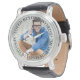 Uhr, Vintage Männeruhr mit schwarzem Lederarmband