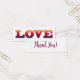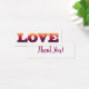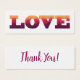 Vielen Dank Karte mit Wort-Liebe über moderne geometrische polygonale Design. Low Poly Schriftart in den Farben lila, violett, rosa, orange und gelb.