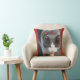 Liebe ich Liebe mein Katzenpolster. Ein Foto einer hübschen, grauen und weißen Katze auf der Vorderseite dieses Kissens mit rotem Schnitt die Seiten hinunter und die Worte "Liebe... Liebe meine Katze". Die Rückseite des Kissens ist schlicht rot. Perfektes Geschenk für Katzenliebhaber.