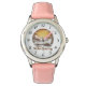 Kinderuhr aus Edelstahl mit rosa Lederarmband