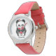 Uhr, Kinderuhr aus Edelstahl mit rosa Lederarmband