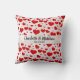Dieses niedliche und hübsche Kissen kann mit den Namen und dem Datum Ihrer Wahl oder mit jeder anderen Nachricht angepasst werden. Es zeigt rote Herzen über einem weißen Hintergrund auferlegt. Perfekt für den Valentinstag oder zu jeder Jahreszeit!