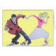 1950er 1960er Rock 'n' Roll Tänzer Rock and Roll Dance Einladung 1950er 1960er Rock 'n' Roll Tänzer Ein Paar Rock 'n' Roll oder Jive Tänzer. Ein Mädchen, das einen Poodle Rock trägt, Bob Socken, Sattelschuhe, ein rosa Shirt und Halskuchtel und Band in ihrem pony Schwanz. Ein Teddy Junge mit einem DA Haarschnitt schwarze Krawatte rote Jacke mit schwarzem Kragen und Trimm, schwarze Hose. Beachten Sie, dass der Raum zwischen den beiden Tänzern wie ein Herz gestaltet ist!