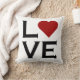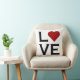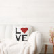 Liebe geschrieben in dekorativen Text mit mutigem schwarzem Text und ein großes rotes Herz auf einen weißen Hintergrund. Gedruckt auf beiden Seiten vom Kissen. Auch verfügbar in kontrastierenden Farben.