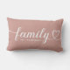 Moderne und stilvolle Kissendesign mit individueller Lumbalform-Kissengestaltung mit einfacher und minimaler "Family" Typografie mit blüh- und Herzdetails. Personalisieren Sie den unten stehenden Großtext mit einem Mono oder Jahr festgelegt. Die Rose ist weiß und neutral, die Farbe ist pink.
