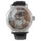 Uhr, Vintage Männeruhr mit schwarzem Lederarmband