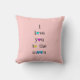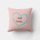 Liebe Sie zum Mond…. und hinter (Aqua auf Rosa); Buntes Wurfs-Kissen; Front sagt: Liebe I Sie zum Mond (mit bunten Herzen); Rückseite hat die Wörter "und hinteres" innerhalb eines von Hand gezeichneten Aquaherzens!