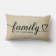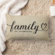 Moderne und stilvolle Kissendesign mit individueller Lumbalform-Schrift, die schlicht und minimalistisch in Schwarz gehalten ist und blühte- und Herzdetails enthält. Personalisieren Sie den unten stehenden Großtext mit einem Mono oder Jahr festgelegt. Ein rustikaler Leinenhintergrund ergänzt die Wohngestaltung im Bauernstil um Vintage Anziehungskraft.