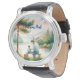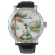 Uhr, Vintage Männeruhr mit schwarzem Lederarmband