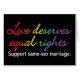 Als Pro-Homosexuell Eherechte Design lautet der in Regenbogenfarben gehaltene Text: "Liebe verdient gleiche Rechte, unterstützt gleichgeschlechtliche Ehe".